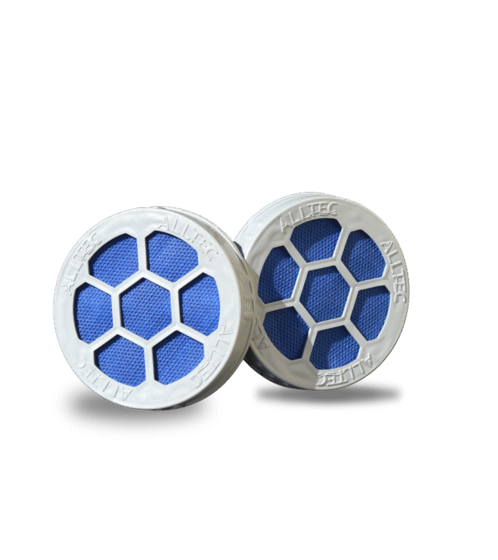 Filtro químico para vapores orgânicos, composto por carvão ativado granulado envolvido por um cartucho plástico. Para contaminantes específicos (como amônia, formaldeído, gases ácidos e mercúrio), o carvão ativado também é tratado para que haja absorção química do contaminante, através de sua reação com a substância utilizada no tratamento.