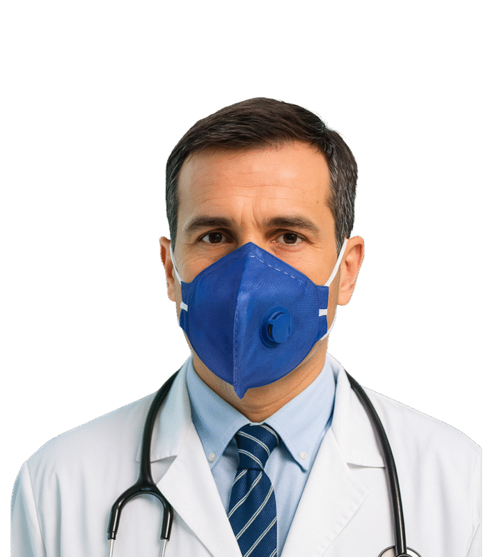 COMPOSIÇÃO: Confeccionado em quatro camadas, sendo: camada externa de fibra sintética de polipropileno; camada meio de fibras sintética estrutural; camada filtrante de fibra sintética com tratamento eletrostático, camada interna de fibra sintética de contato facial. Com tirantes de cabeça de elástico para sustentação da peça facial e tira metálica para ajuste sobre o septo nasal.